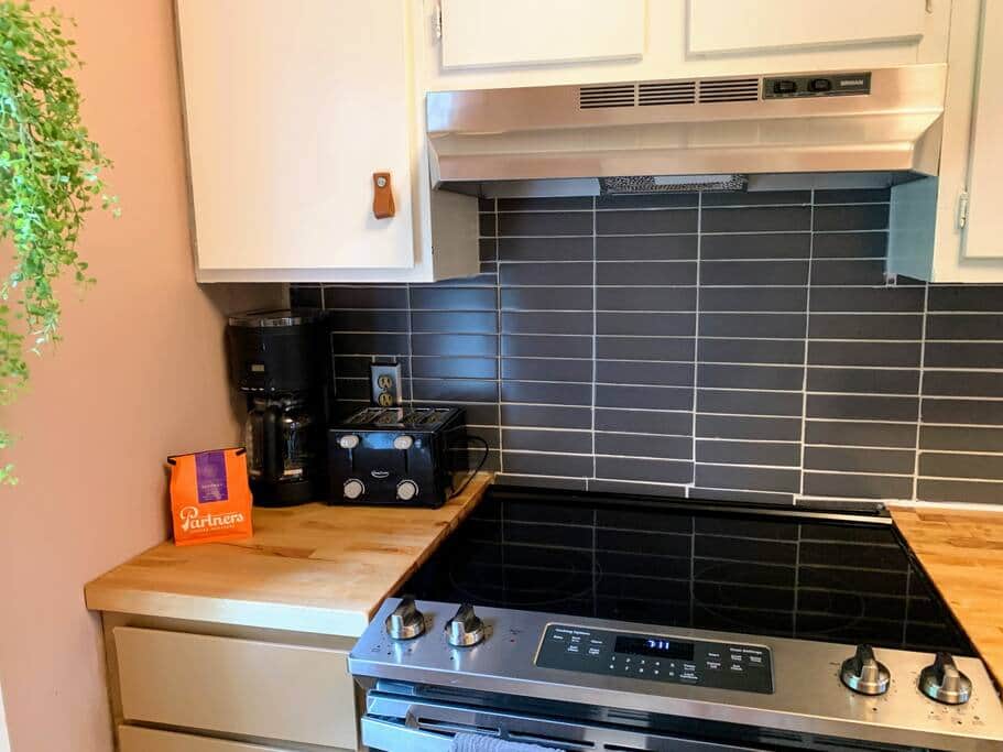 Children's high chair, Coffee machine, Cooking utensils, Kitchen stove, Oven, Refrigerator